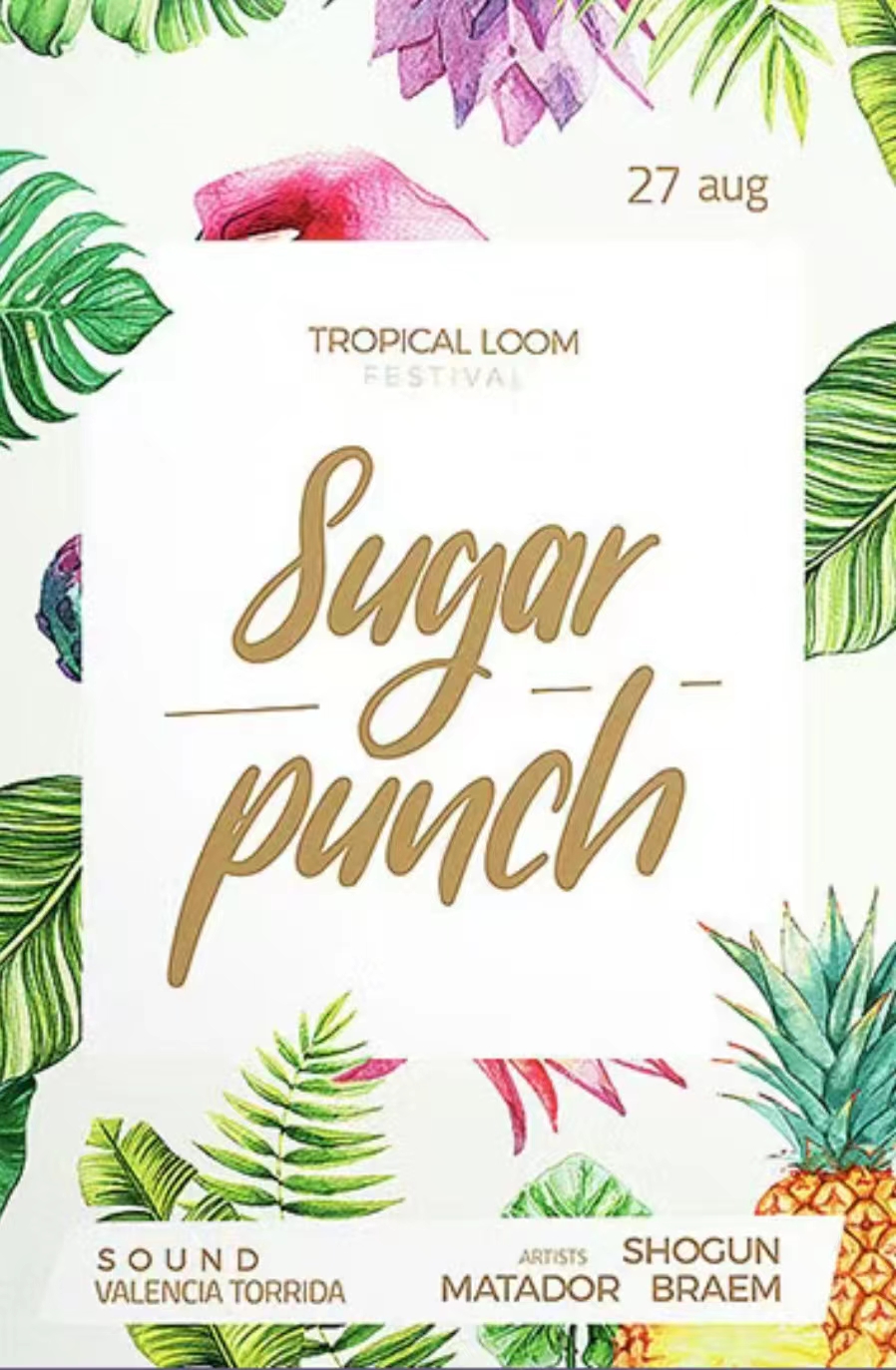 主标题是运用了一种手写花体,符合这张海报的主体,但是加了一根线,我想是为了平衡花体的不稳定感(动静平衡)。加白色色块的目的是为了更好得凸显文字,因为背景比较花。